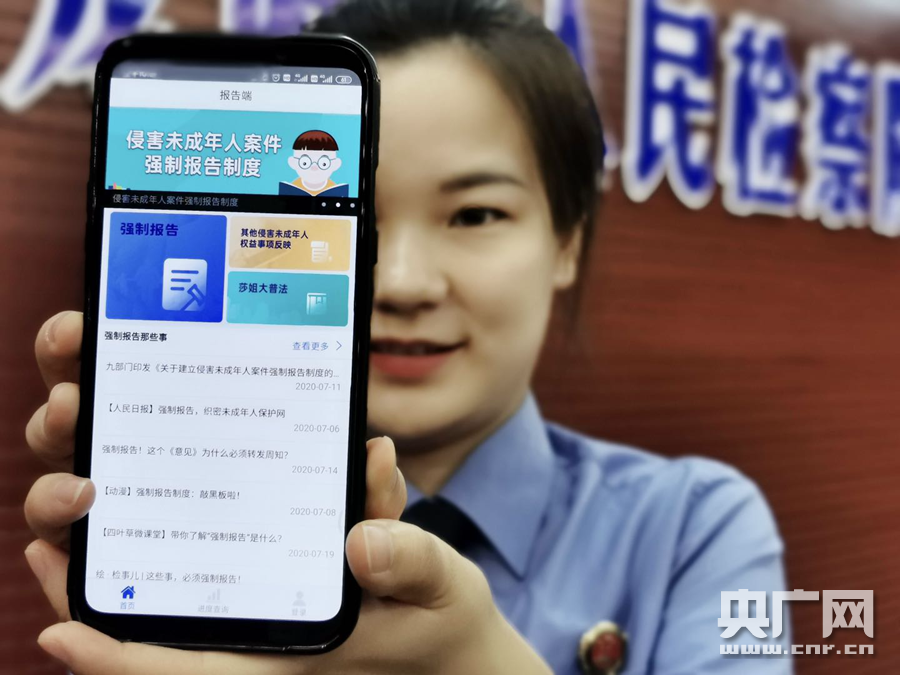 央廣網(wǎng)重慶7月23日消息(記者陳鵬)為了認(rèn)真落實(shí)最高檢“一號檢察建議”和最高人民檢察院等9部門共同下發(fā)的《關(guān)于建立侵害未成年人案件強(qiáng)制報(bào)告制度的意見(試行)》(下稱《意見》)。今天上午,由重慶市九龍坡區(qū)人民檢察院、重慶市公安局九龍坡區(qū)分局探索開發(fā)的“強(qiáng)制報(bào)告APP”上線試運(yùn)行,這也是最高檢等9部門下發(fā)《意見》以來全國首個(gè)“強(qiáng)制報(bào)告APP”。