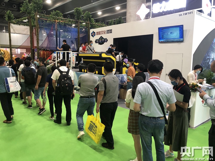文旅產(chǎn)業(yè)開始復(fù)蘇,展會(huì)體驗(yàn)區(qū)排起長隊(duì)(央廣記者何偉奇 攝)