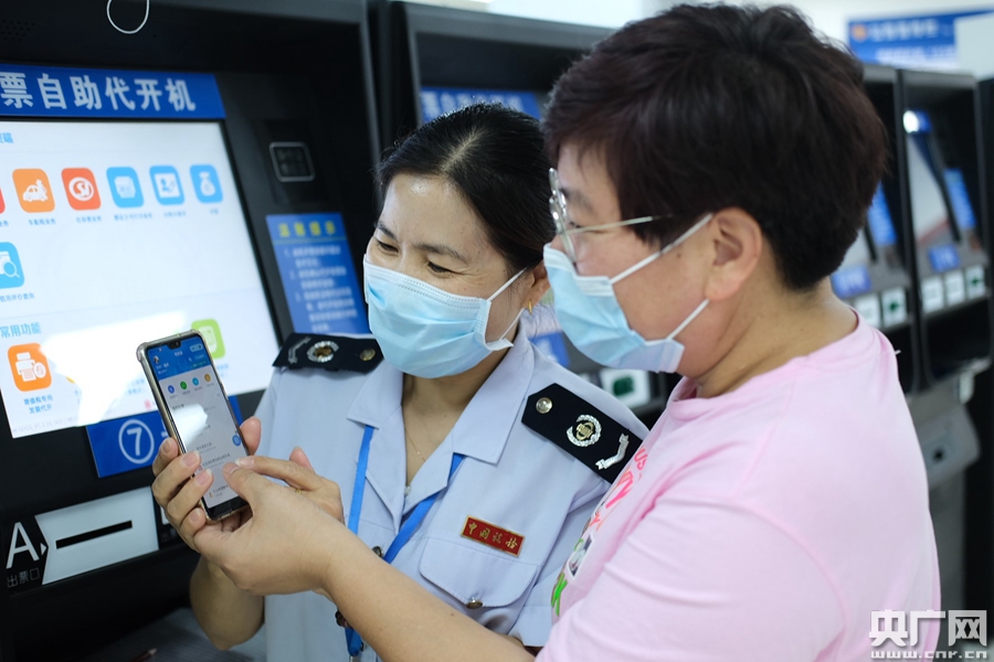 圖為佛山市高明區(qū)稅務(wù)人員積極引導(dǎo)繳費(fèi)人通過(guò)“粵稅通”小程序進(jìn)行社保事項(xiàng)辦理(央廣網(wǎng)發(fā) 通訊員供圖)