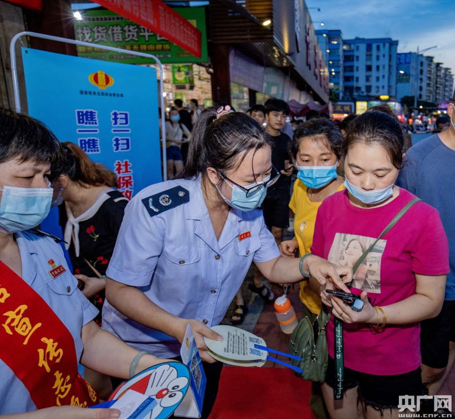 圖為肇慶稅務(wù)人員走進(jìn)當(dāng)?shù)匾故袡n口,向群眾宣傳社保費(fèi)政策(央廣網(wǎng)發(fā) 通訊員供圖)