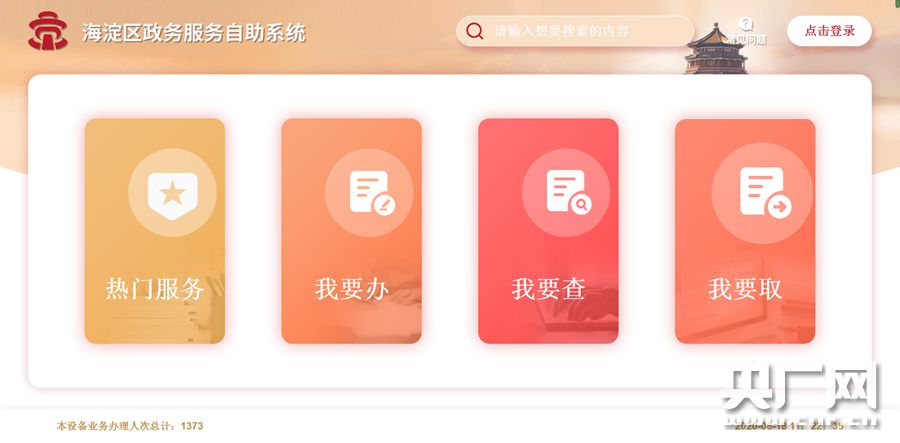海淀自助服務(wù)終端集查詢、事項申報、人證核驗、打印、存取件等為一體,包含“熱門服務(wù)、我要辦、我要查、我要取”四大功能模塊,業(yè)務(wù)范圍涵蓋市級自助服務(wù)事項、區(qū)綜合大廳綜窗事項、區(qū)級與街鎮(zhèn)網(wǎng)辦事項以及高頻主題事項。這是在全市首次實現(xiàn)自助政務(wù)服務(wù)業(yè)務(wù)全觸達、政務(wù)服務(wù)形式全覆蓋及收件與實際辦理相結(jié)合。