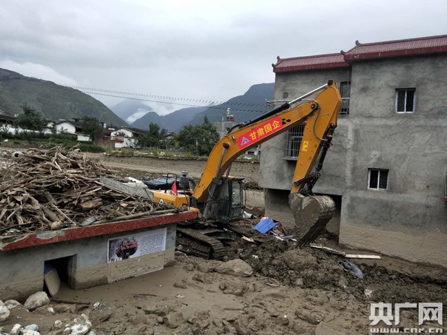 甘肅省水電工程局公司搶險(xiǎn)救災(zāi)突擊隊(duì)在舟曲縣曲告納鎮(zhèn)木耶村進(jìn)行河道清理(央廣網(wǎng)發(fā) 甘肅省水利廳供圖)