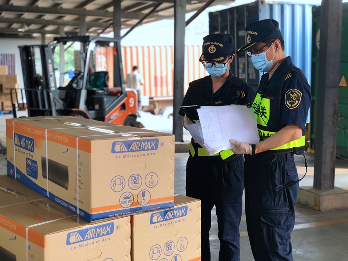 在中山保稅物流中心物流園區(qū),1081臺中山制造的空氣加濕器在海關關員的監(jiān)管下,啟運發(fā)往美國。