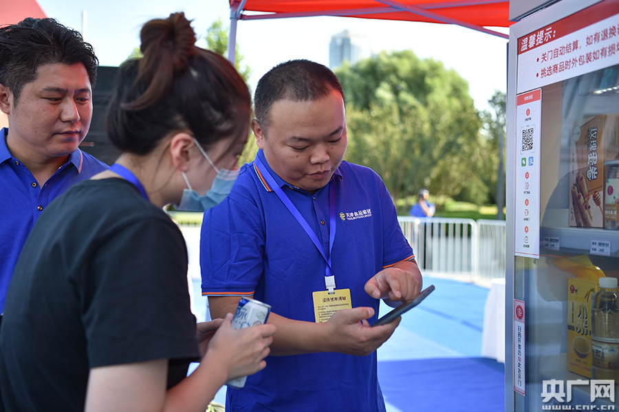 天津食品集團職工向民眾介紹扶貧產(chǎn)品(央廣網(wǎng)發(fā) 天津市合作交流辦供圖)
