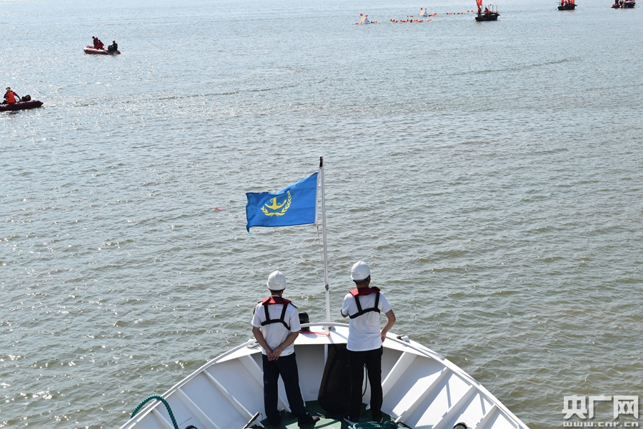 執(zhí)法人員現(xiàn)場維護(hù)“橫渡西江”活動秩序(央廣網(wǎng)發(fā) 肇慶海事局供圖)