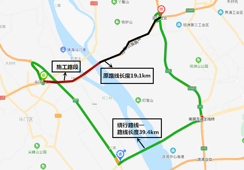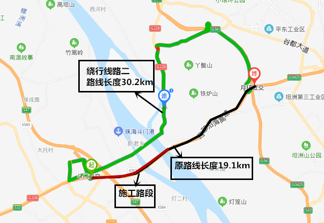 具體繞行路線:斗門(mén)立交–江珠高速–珠海大道–南屏互通-廣珠西線高速-月環(huán)立交-西部沿海高速。