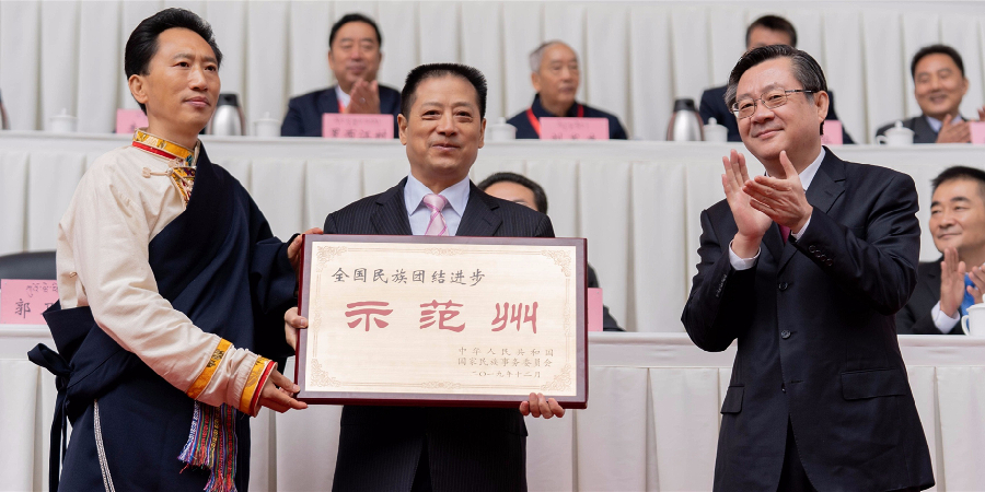 “全國民族團結進步示范州”授牌(央廣網發(fā) 甘孜州委宣傳部供圖)