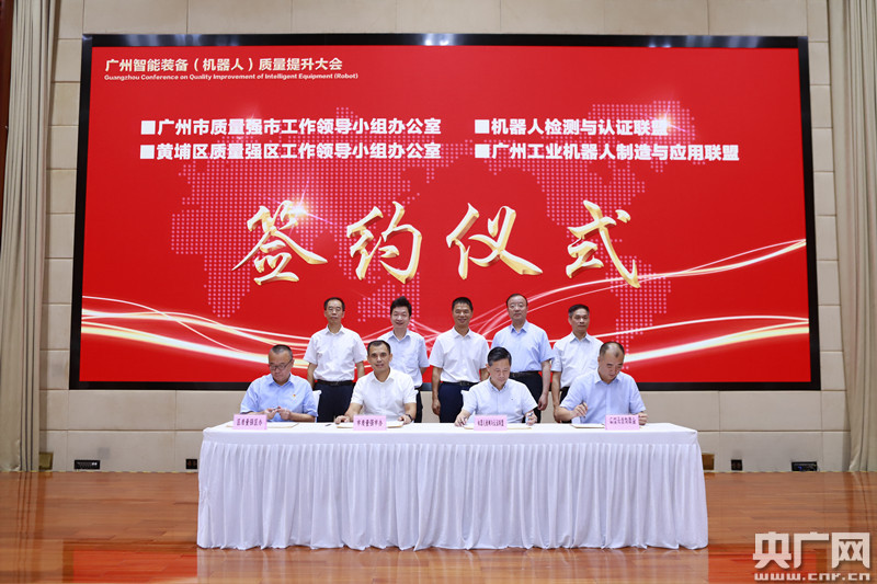 廣州智能裝備(機器人)質(zhì)量提升大會現(xiàn)場簽約活動(央廣網(wǎng)發(fā) 通訊員黎東曉供圖)