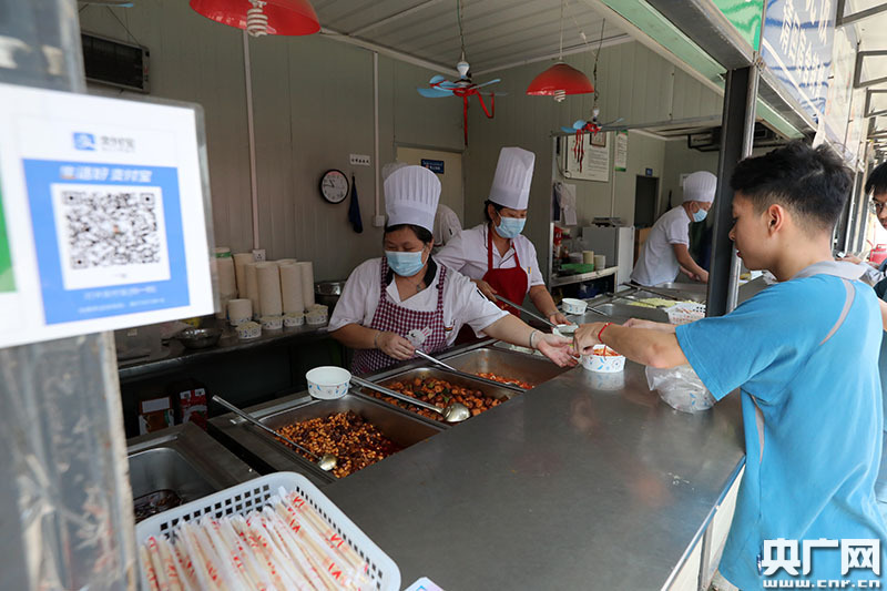 在工地食堂,10元錢(qián)就可以買到一縈一素,每天菜不重樣,且有四川、安徽、陜西等多種口味。(央廣網(wǎng)記者 魏煒 攝)