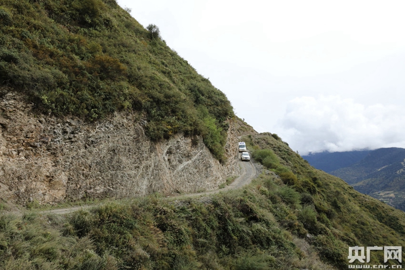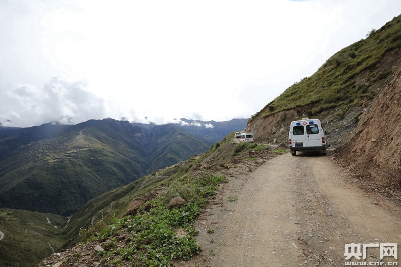 送醫(yī)車隊(duì)駛過崎嶇的山路(中央廣播電視總臺央廣記者 普布次仁 攝)