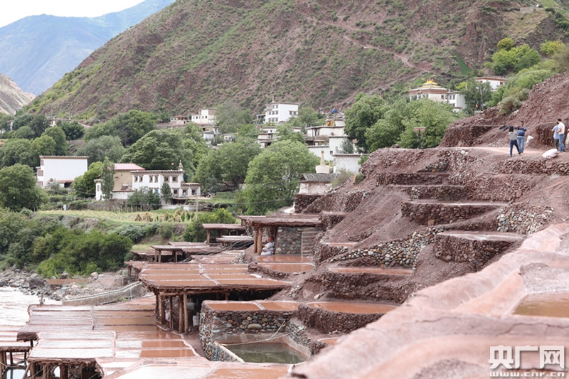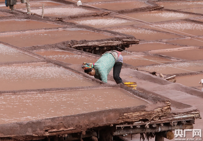 鹽井產(chǎn)鹽使用最原始的手工曬鹽方式(中央廣播電視總臺央廣記者 普布次仁 攝)
