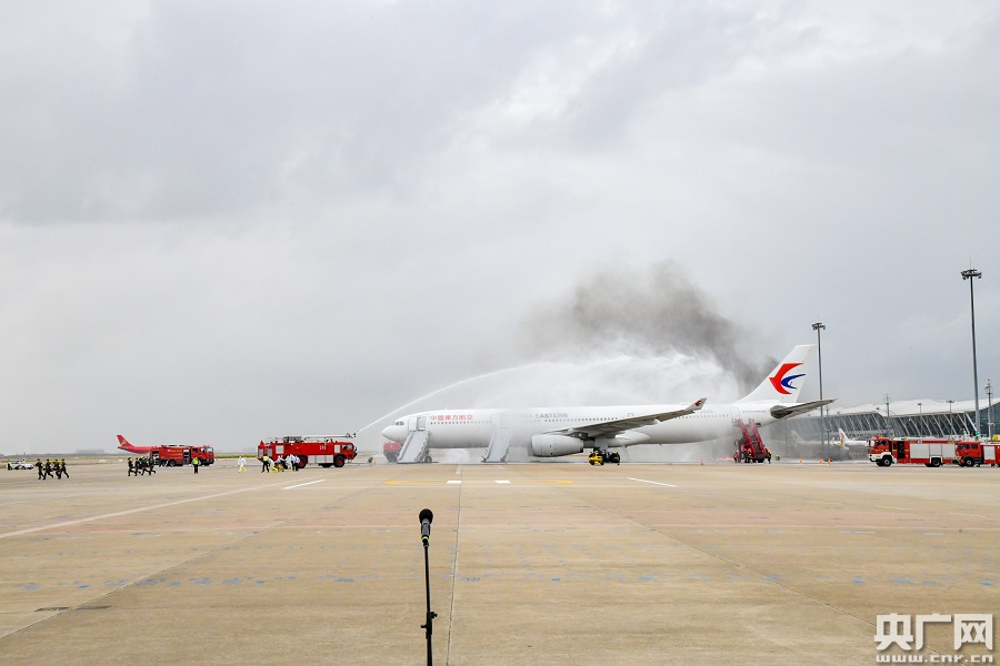 中國民航史上規(guī)模最大的機場應(yīng)急救援綜合演練——“敬畏2020”上海浦東國際機場應(yīng)急救援綜合演練今天(16日)舉行(央廣網(wǎng)發(fā) 浦東機場供圖)