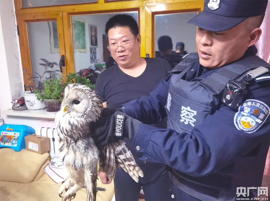 當(dāng)晚22時(shí)許,伊爾施邊境派出所接到轄區(qū)居民報(bào)警,稱其在家里闖進(jìn)一只疑似貓頭鷹。民警立即趕赴現(xiàn)場(chǎng),檢查發(fā)現(xiàn),該動(dòng)物身體長(zhǎng)約40厘米,翅展80cm,有橫斑,爪子比較鋒利,雖然身上并無(wú)明顯外傷,但其身子虛弱。民警遂將其帶回派出所找來(lái)食物和水對(duì)其進(jìn)行喂養(yǎng),幫助恢復(fù)體力。經(jīng)專家人士辨認(rèn),此動(dòng)物為國(guó)家二級(jí)保護(hù)動(dòng)物貓頭鷹。目前,該貓頭鷹已移交當(dāng)?shù)厣植块T送往有救治條件的場(chǎng)所進(jìn)一步治療,待傷勢(shì)痊愈后放歸大自然。
