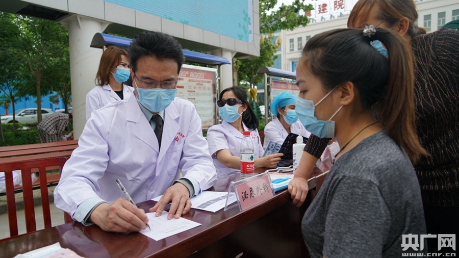 援疆醫(yī)療直屬隊(duì)隊(duì)長(zhǎng)、喀地一院院長(zhǎng)林天歆率廣東科技特派員團(tuán)隊(duì)在廣東對(duì)口受援地圖木舒克市人民醫(yī)院開(kāi)展義診活動(dòng)(央廣網(wǎng)發(fā))