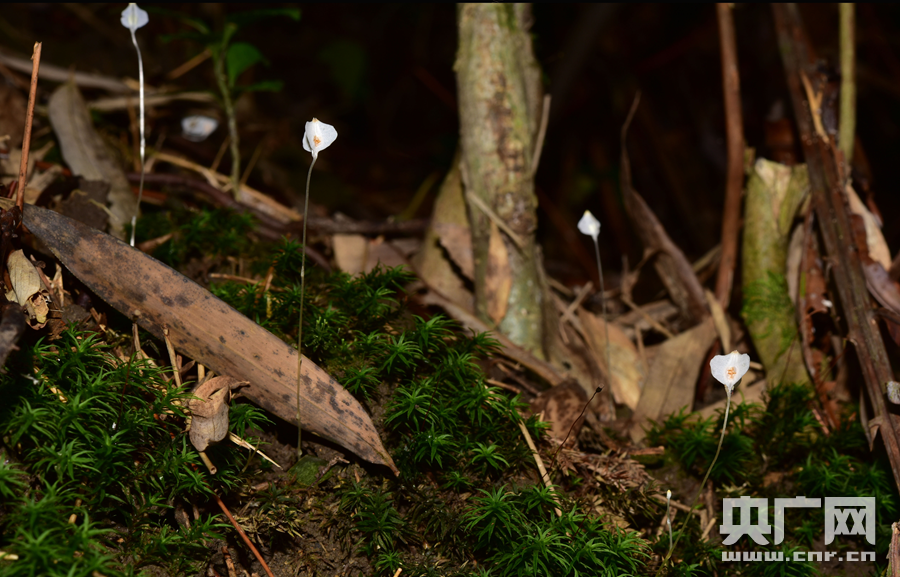 此次發(fā)現(xiàn)的植物新物種命名為Burmannia decurrens,其為完全真菌異養(yǎng)型,白色植株體小,葉片退化為鱗片狀,花部有明顯的翅,種子黃色,灰塵狀約0.03厘米,常生長(zhǎng)在潮濕幽暗的竹林下。