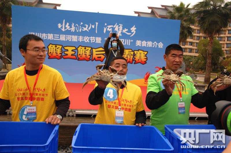 央廣網漢川10月28日消息(記者凌姝 通訊員 郭俊杰)金秋慶豐收,蟹香沁心頭。今天,湖北漢川市第三屆河蟹豐收節(jié)暨“吃在漢川”美食推介會舉辦。來自漢江流域15個城市的120多家農業(yè)企業(yè)的河蟹、小龍蝦、鱖魚等優(yōu)質水產品以及大米、蔬菜、瓜果等特色農產品展銷推介等在內的系列活動精彩呈現(xiàn)。現(xiàn)場評出今年漢川的蟹王503克,超過1斤,蟹后為408克。