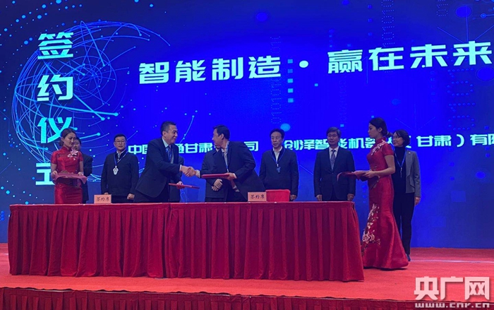 創(chuàng)澤智能機(jī)器人(甘肅)有限公司與中國(guó)聯(lián)通甘肅分公司等5家企業(yè)簽訂了近10億元的人工智能產(chǎn)品供應(yīng)意向協(xié)議(央廣記者王妍 攝)
