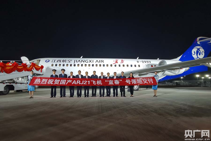 央廣網(wǎng)南昌10月31日消息(記者謝元森)10月30日晚,中國商用飛機有限責任公司首次在中國商飛江西生產(chǎn)試飛中心交付ARJ21飛機,這也是江西航空接收的第3架ARJ21飛機。