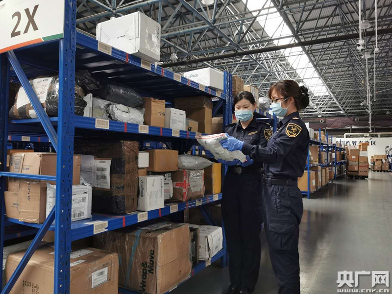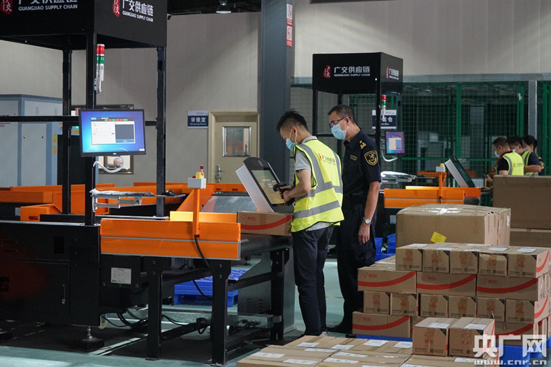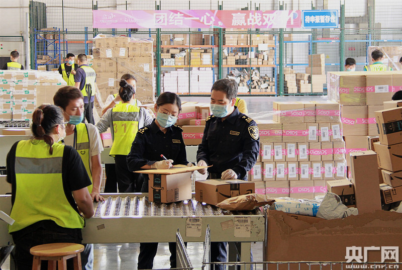 佛山海關(guān)駐南海辦事處關(guān)員對跨境電商進(jìn)口貨物進(jìn)行監(jiān)管(央廣網(wǎng)發(fā) 海關(guān)供圖)