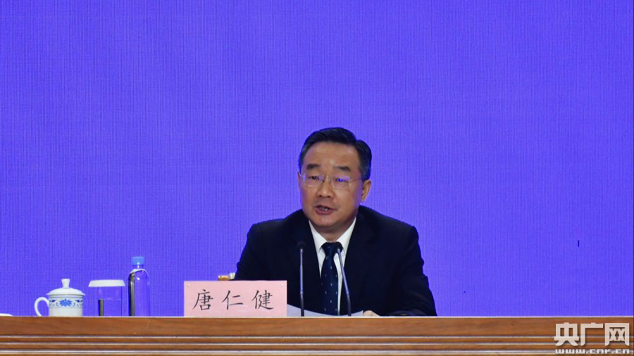 甘肅省省長唐仁健介紹甘肅脫貧攻堅整體情況(央廣網(wǎng)記者 張磊 攝)