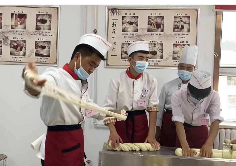 甘肅省臨夏回族自治州東鄉(xiāng)職校開展拉面培訓(xùn),學(xué)員在學(xué)?梢悦赓M(fèi)學(xué)習(xí)技能 (總臺(tái)央廣記者王妍 攝)