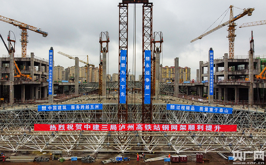 川南城際鐵路瀘州高鐵站施工現(xiàn)場(央廣網(wǎng)發(fā) 中建三局供圖)