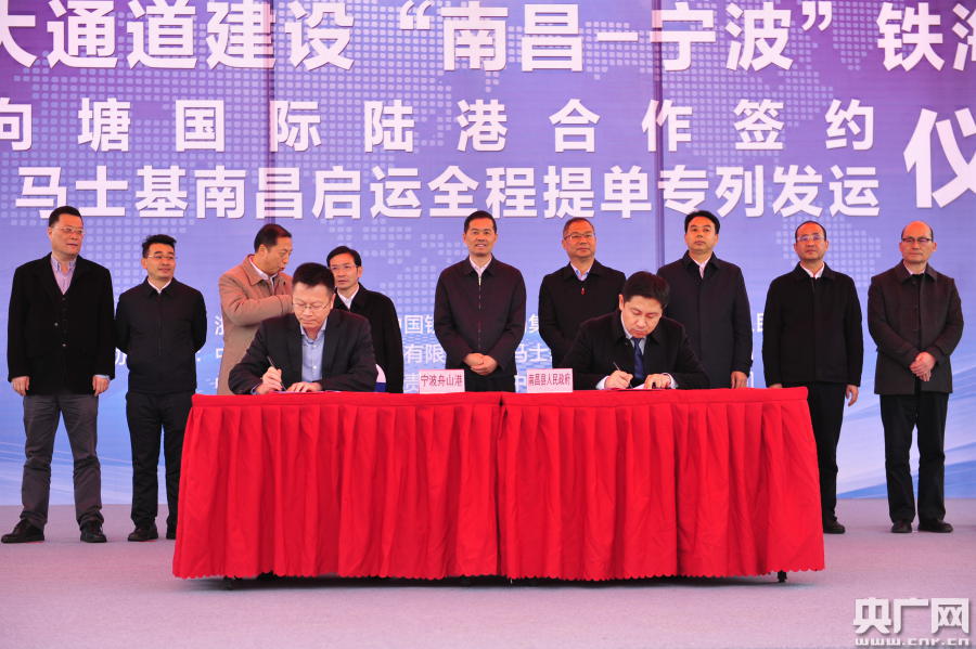 央廣網(wǎng)南昌12月2日消息(記者謝元森 通訊員李慳)12月1日,“贛浙物流大通道建設‘南昌——寧波’鐵海十周年”慶祝活動在江西省南昌向塘國際陸港鐵路物流基地舉行;顒蝇F(xiàn)場,南昌縣人民政府與寧波舟山港股份有限公司簽署南昌向塘國際陸港合作協(xié)議。