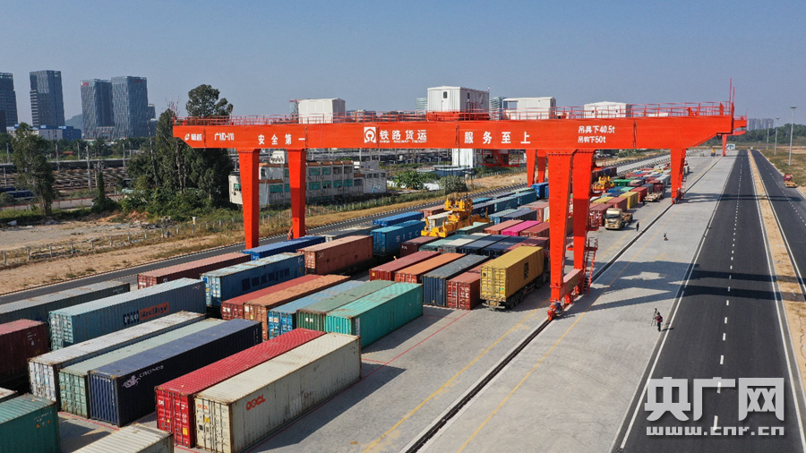 廣東首列!“灣區(qū)號(hào)”跨境電商中歐班列啟程(央廣網(wǎng)發(fā) 通訊員供圖)