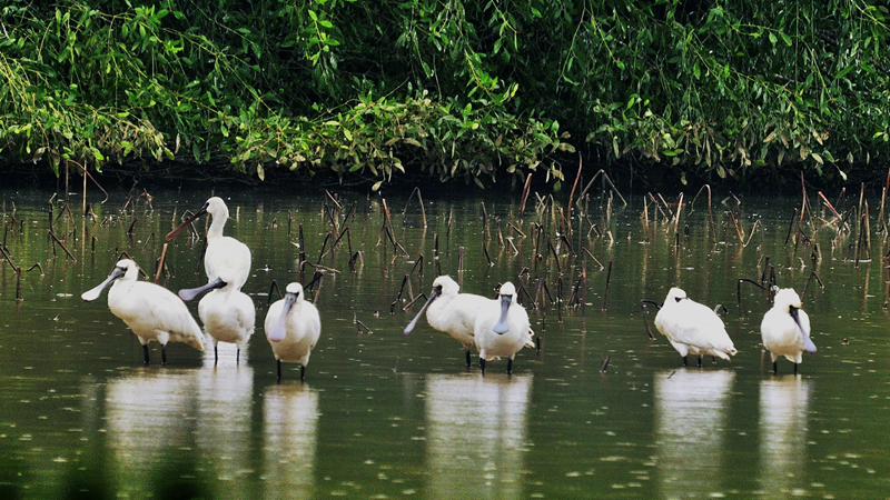 南沙濕地上發(fā)現(xiàn)的黑臉琵鷺(央廣網(wǎng)發(fā) 通訊員供圖)