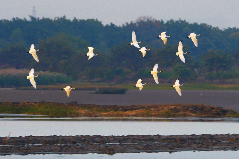 據(jù)悉,黑臉琵鷺是全球?yàn)l危珍稀鳥類,它已成為僅次于朱鹮的第二種最瀕危的水禽,全球僅存不到4000只,國(guó)際自然資源物種保護(hù)聯(lián)盟和國(guó)際鳥類保護(hù)委員會(huì)將其列入瀕危物種紅皮書中,現(xiàn)為中國(guó)二級(jí)保護(hù)動(dòng)物。記者從南沙濕地了解到,近年來南沙地區(qū)觀察到的黑臉琵鷺數(shù)量逐年上升。2014年南沙濕地觀測(cè)到10只黑臉琵鷺到訪;2015、2016、2017年都觀察到了20只左右的黑臉琵鷺蹤跡;2018年發(fā)現(xiàn)黑臉琵鷺39只,曾創(chuàng)下觀測(cè)數(shù)量記錄;2019年數(shù)量有所減少,僅觀測(cè)到21只。2020年暨年初1月發(fā)現(xiàn)25只黑臉琵鷺后,此次12月5日發(fā)現(xiàn)的52只黑臉琵鷺在數(shù)量上創(chuàng)下歷史新高,為近十年來之最。