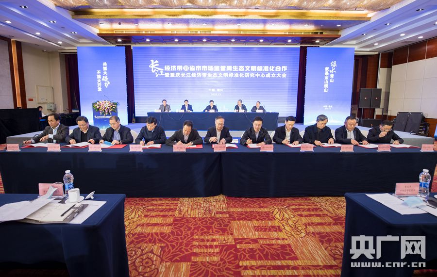長江經(jīng)濟(jì)帶11省市市場(chǎng)監(jiān)管局簽署生態(tài)文明標(biāo)準(zhǔn)化合作備忘錄(央廣網(wǎng)發(fā) 重慶市市場(chǎng)監(jiān)管局供圖)
