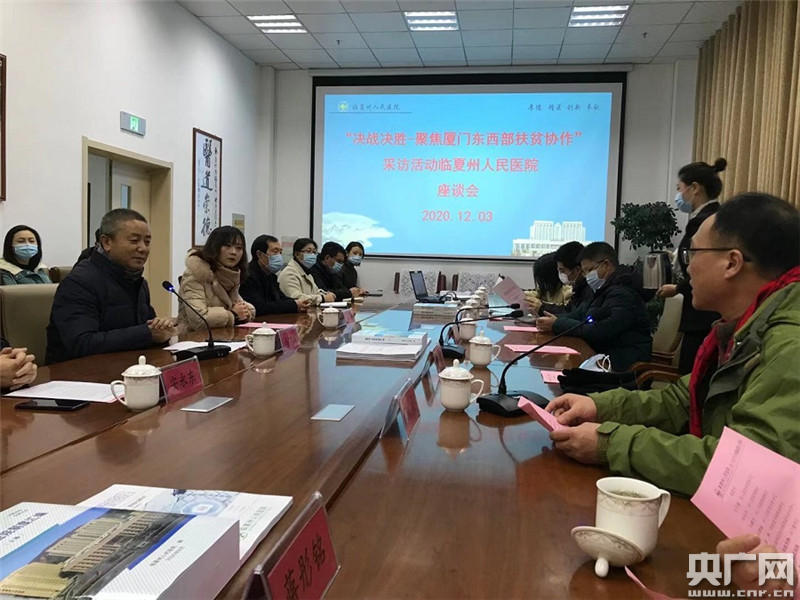 臨夏州人民醫(yī)院向采訪團(tuán)介紹廈門(mén)“組團(tuán)式”幫扶經(jīng)驗(yàn)做法(央廣網(wǎng)記者 陳庚 攝)