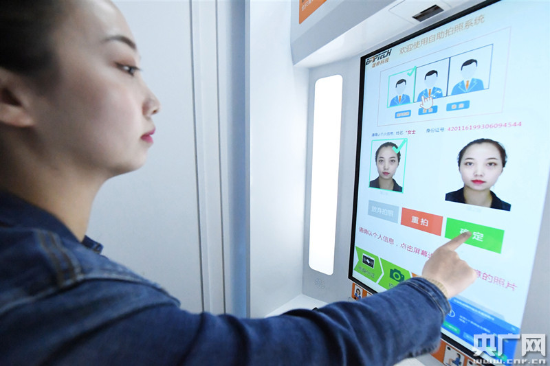自助拍照設(shè)備操作簡單快捷,只需按照語音提示,通過簡單幾步點選,短時間即可完成證件拍攝、身份信息上傳、打印申請人照片回執(zhí)等功能。出入境民警何瑞介紹:“現(xiàn)在使用自助照相、自助填表設(shè)備后,群眾只需幾分鐘就可完成申請表格、照相流程,無需再提供復(fù)雜的各類材料復(fù)印件,真正實現(xiàn)‘一站受理、一窗通辦、一次辦好’”。