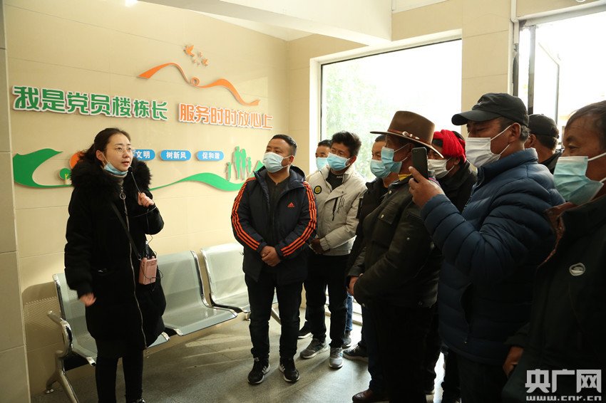 在檀溪府邸小區(qū)參觀學(xué)習(xí)黨員“雙報到”、紅色物業(yè)等工作(央廣網(wǎng)發(fā) 倫珠澤仁 攝)