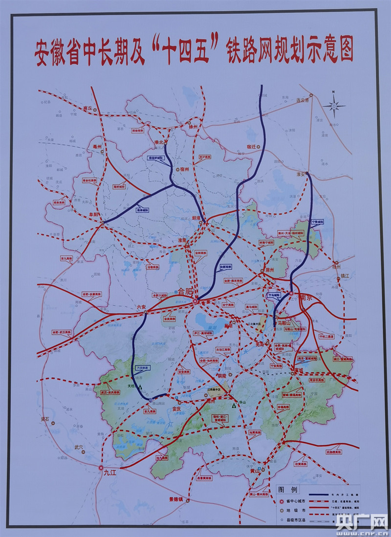 安徽省中長期及“十四五”鐵路網(wǎng)規(guī)劃示意圖(央廣網(wǎng)記者 劉軍 攝)
