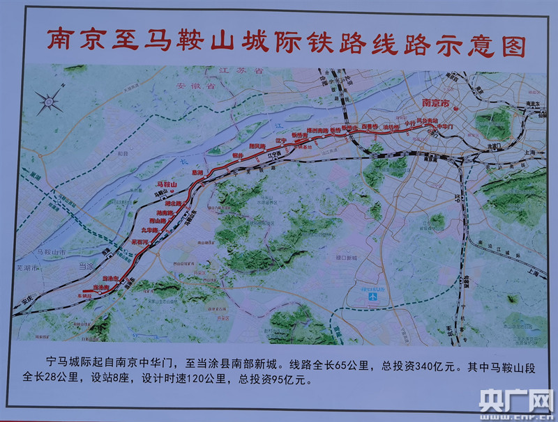 南京至馬鞍山城際鐵路線路示意圖(央廣網(wǎng)記者 劉軍 攝)
