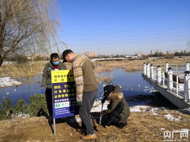 2021年新年元旦,在市民走親訪友家庭歡聚之時,近百名志愿者冒著零下7度嚴(yán)寒,沿白沙河夏莊段濕地開展巡護巡視,科普環(huán)保知識,保護濕地生物多樣,放飛前期救護的候鳥,對部分濕地冰封鳥類開展收容救護。