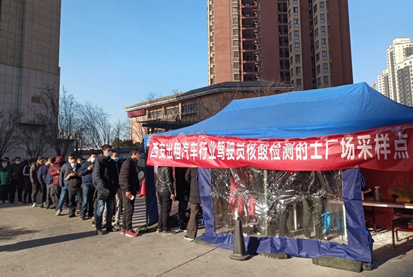 西安出租車、網(wǎng)約車駕駛員排隊接受核酸檢測(央廣網(wǎng)發(fā) 徐楊 供圖)