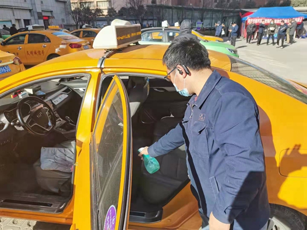駕駛員對出租車進行全面消毒(央廣網(wǎng)發(fā) 徐楊 供圖)