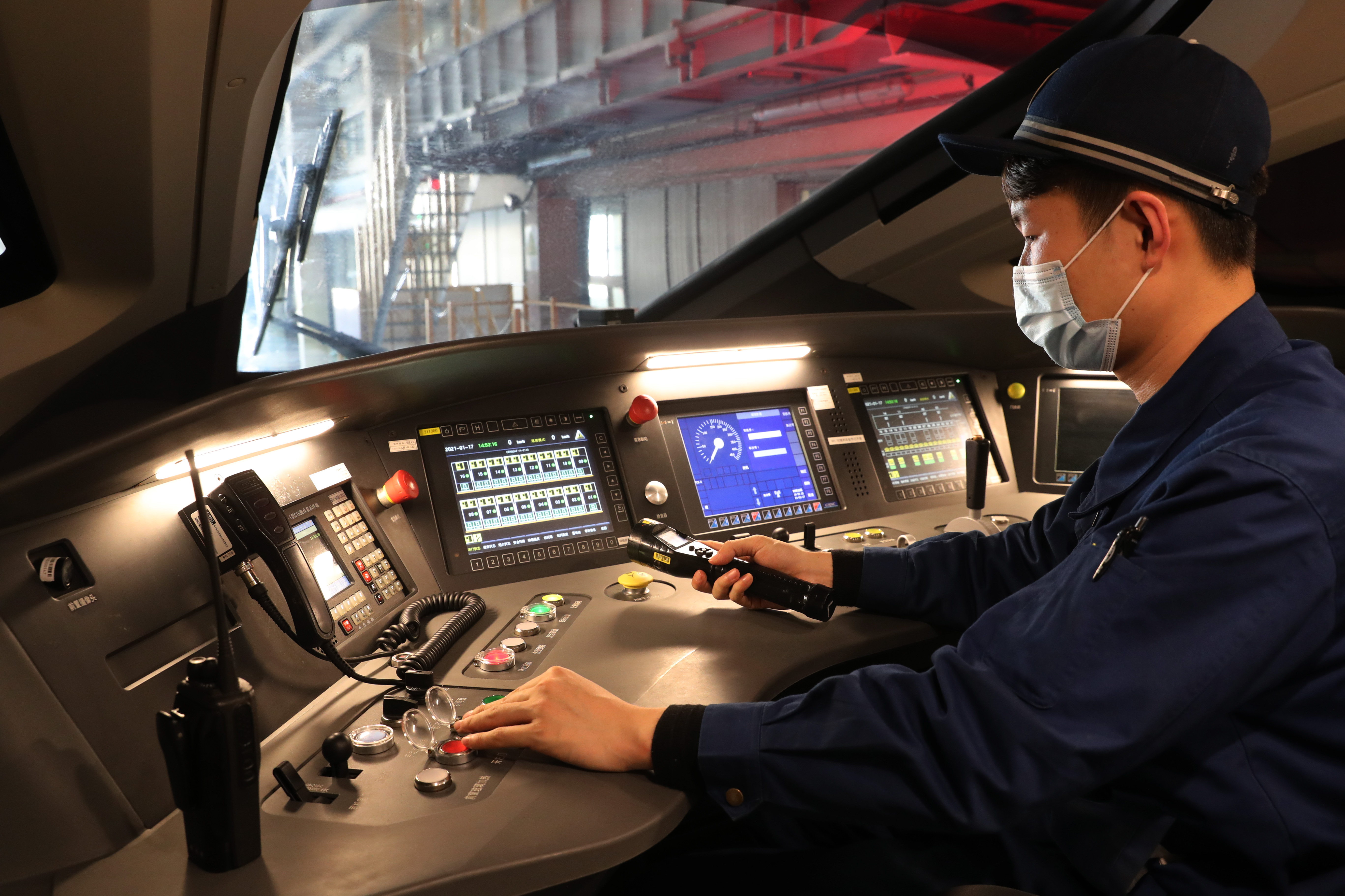 青島動車段的工作人員在司機(jī)室檢查操控各項性能(央廣網(wǎng)發(fā) 張進(jìn)剛攝)