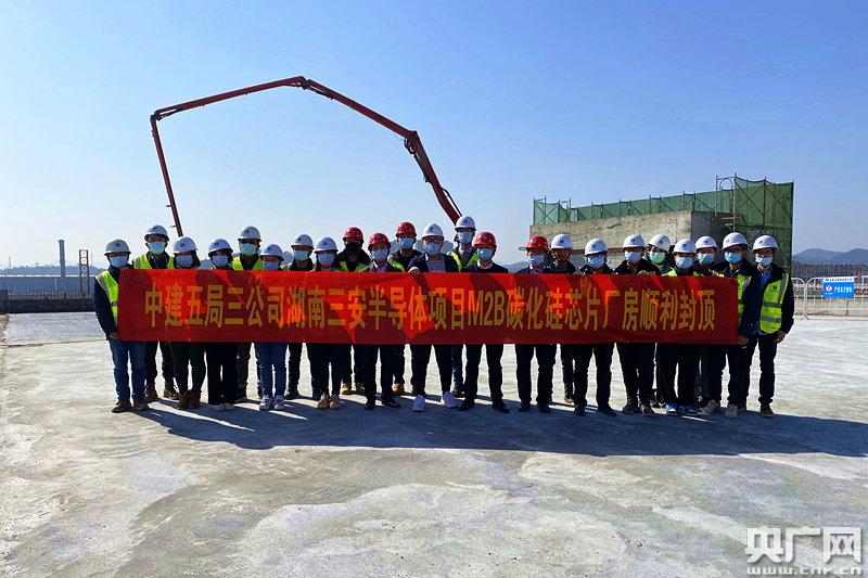 國內(nèi)首條碳化硅全產(chǎn)業(yè)鏈生產(chǎn)線在湖南長沙全面封頂(央廣網(wǎng)記者 堯遙 攝)