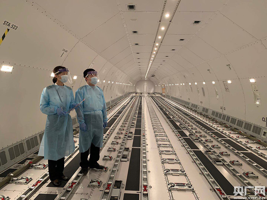 廣州白云機場海關關員在融資租賃進口的飛機機艙內進行監(jiān)管(央廣網(wǎng)發(fā) 余珊 攝)