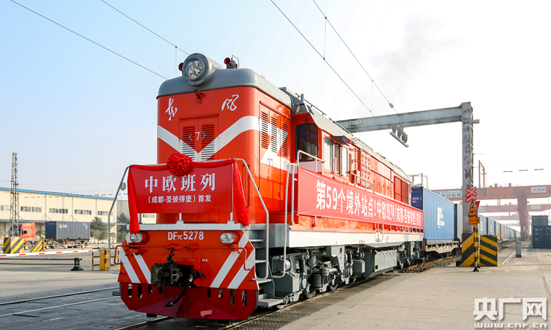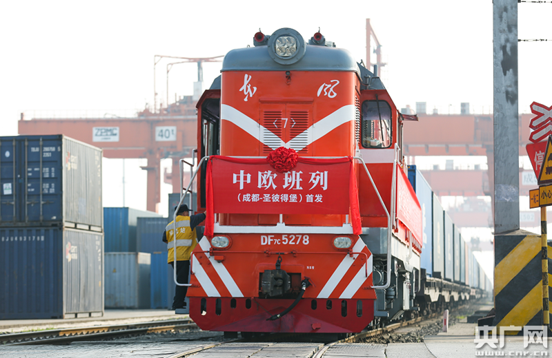 成都至俄羅斯圣彼得堡中歐班列首發(fā)(央廣網(wǎng)發(fā) 成都青白江區(qū)委宣傳部供圖)