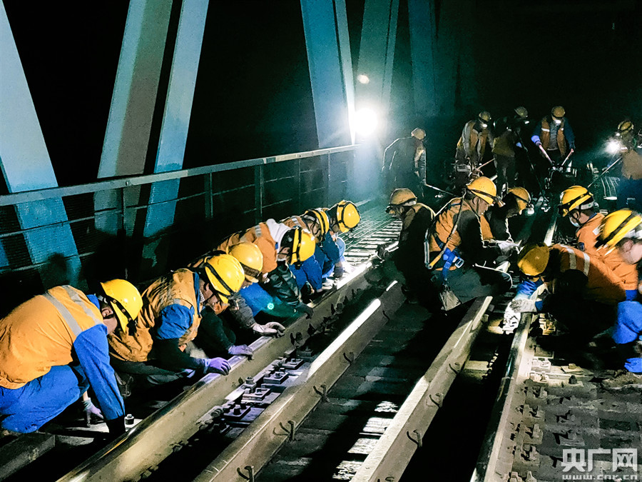 在近百米高的曲江大橋上,夜間氣溫已接近0℃,寒風刮得橋梁有些搖晃,這群鋼鐵漢子個個喘著白氣,頭上結(jié)了一層薄薄的冰霜,然而這一切絲毫沒有影響到他們的斗志。“大家再加把勁,檢查一下各自負責的工作,天窗時間還有20分鐘。”白永潔用響亮的呼喊聲提醒每一名作業(yè)人員。23時40分,此次施工最后3顆橋枕更換完畢,封鎖線路正點開通。通過8個夜天窗的連續(xù)奮戰(zhàn),曲江大橋更換失效橋枕施工共計更換橋枕23顆、K型墊板7塊,橋枕膩縫500顆,護木整修160米。