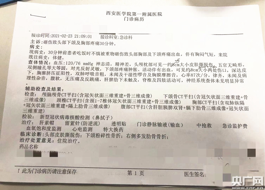 其中一名傷者病例(央廣網(wǎng)見(jiàn)習(xí)記者周彤 攝)