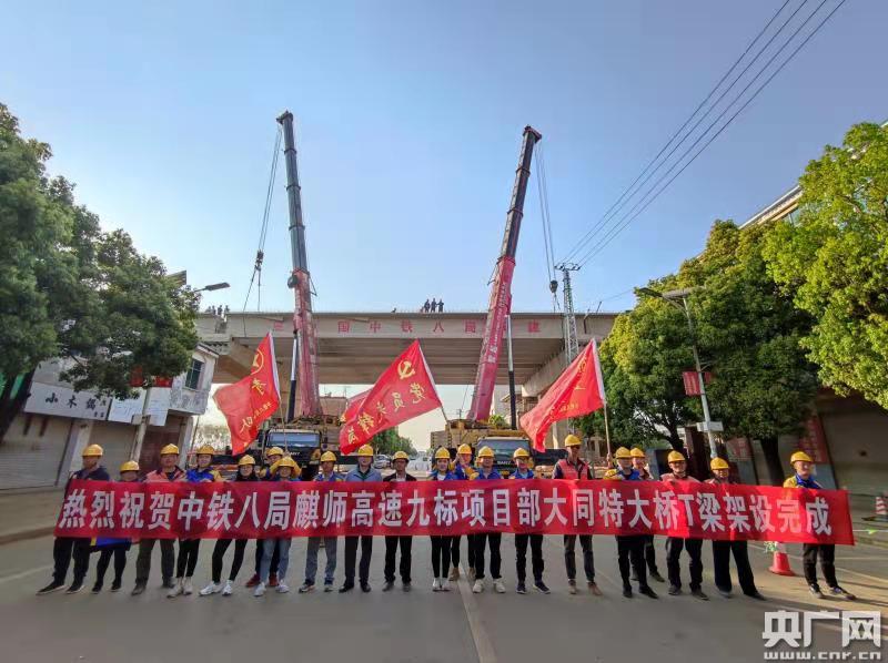 央廣網(wǎng)昆明3月18日消息(記者李健飛 通訊員劉興浩)3月17日,隨著最后一片預(yù)制T梁精準(zhǔn)移動(dòng)至橋墩墊石支座上,標(biāo)志著中鐵八局昆明公司麒師高速公路大同特大橋T梁全部架設(shè)完成,全橋順利貫通。