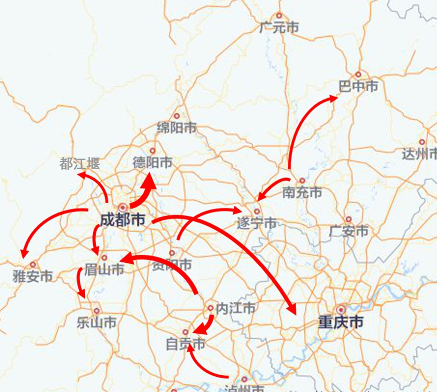 從分布來(lái)看,路網(wǎng)流量圍繞成都等中心城市呈放射狀分布,成都市周邊各主線站以及連通主線站的環(huán)線高速車流量最為密集,發(fā)生擁堵的可能性較大。成綿、成綿復(fù)線、成自瀘、成雅、成德南、成渝等高速預(yù)計(jì)迎來(lái)高出行流量,遂渝、渝蓉高速將承受較大進(jìn)出川流量壓力。