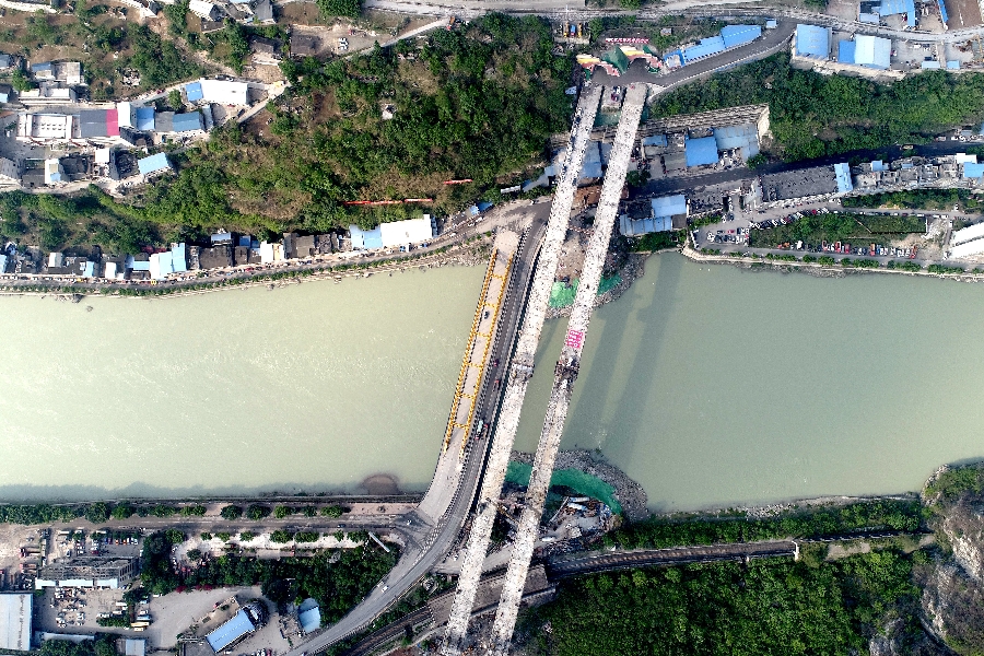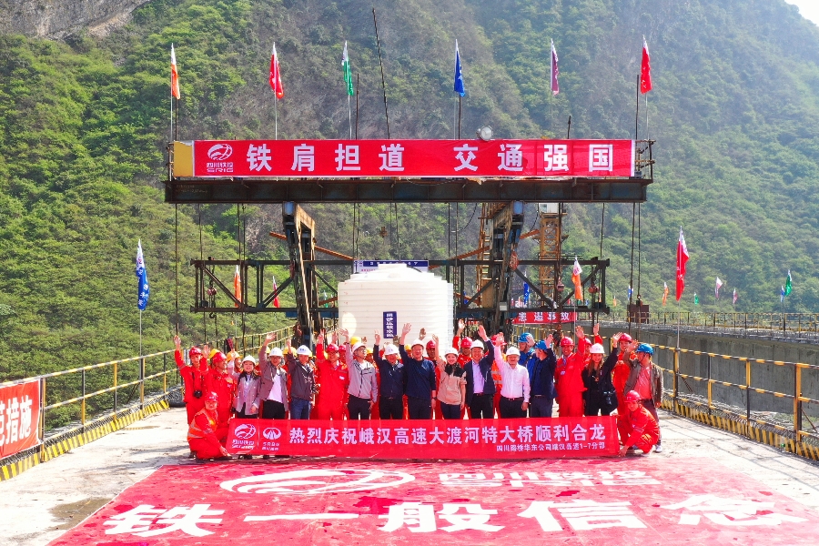 慶祝大橋順利合龍(央廣網(wǎng)發(fā) 四川鐵投集團(tuán)供圖)