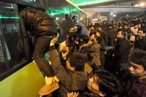 “包擠咧,擠不上的人等下一輛車”