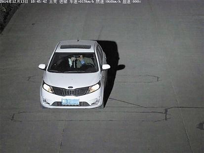 據(jù)介紹,一張拍攝時間是13日下午6時45分,一輛白色起亞轎車在通過王英卡口時,車輛停在路中央,駕駛員與坐在副駕駛座上的女子熱情接吻。